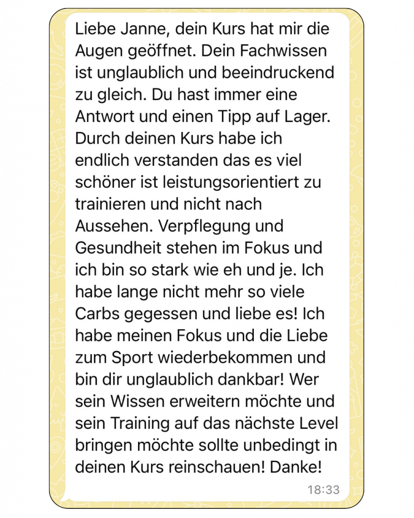 und dabei nicht nur das Trainingziel, sondern auch individuelle Faktoren wie Zyklus, Alltag, Stress und Ernährungsgewohnheiten zu berücksichtigen -