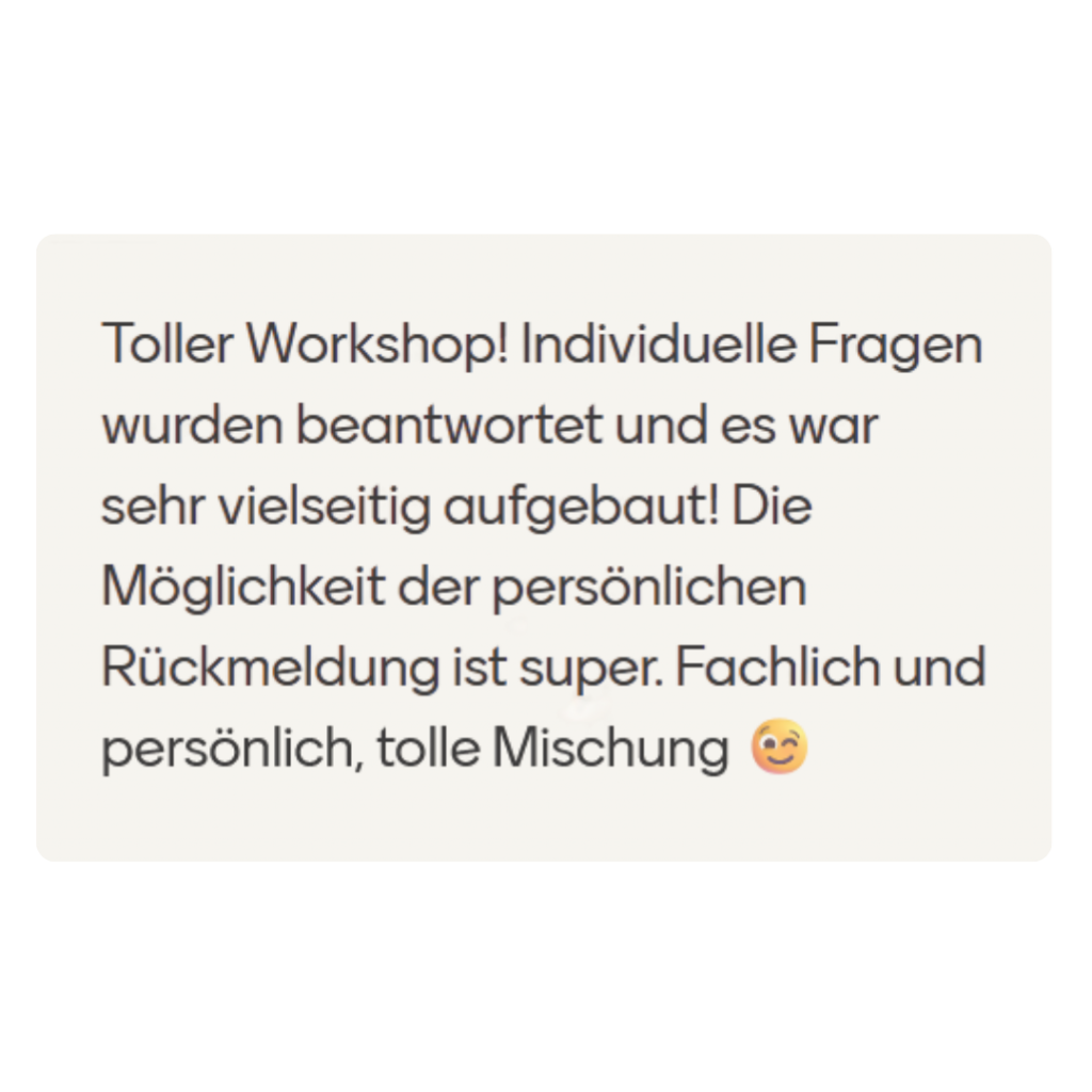 Der Workshop findet live über Zoom statt. Direkt nach der Buchung erhältst du eine Email mit allen Informationen und deinen Zugangsdaten.