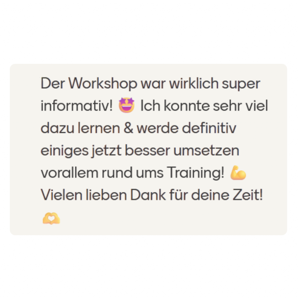 Es gibt Raum für Fragen und individuelle Einordnung, damit du das Wissen auf deine konkrete Trainings- oder Coaching-Situation übertragen kannst.